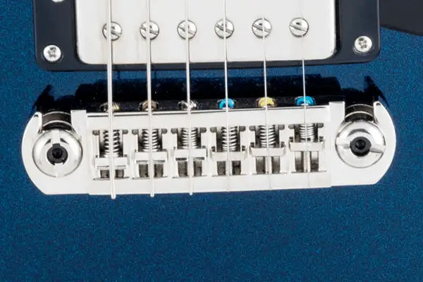 Simplicity and functionality come together in the form of our Lockdown™ locking adjustable wraparound tailpiece. A bridge and tailpiece all in one unit, the wraparound tailpiece provides enhanced sustain and note attack, with adjustable saddles for pinpoint intonation. For maximum coupling, rock-solid tuning stability and trouble-free string changes, the bridge posts lock the bridge down tight. This ensures optimal operation and superior transfer of string energy for bigger, fuller tone with more percussive attack and longer sustain.