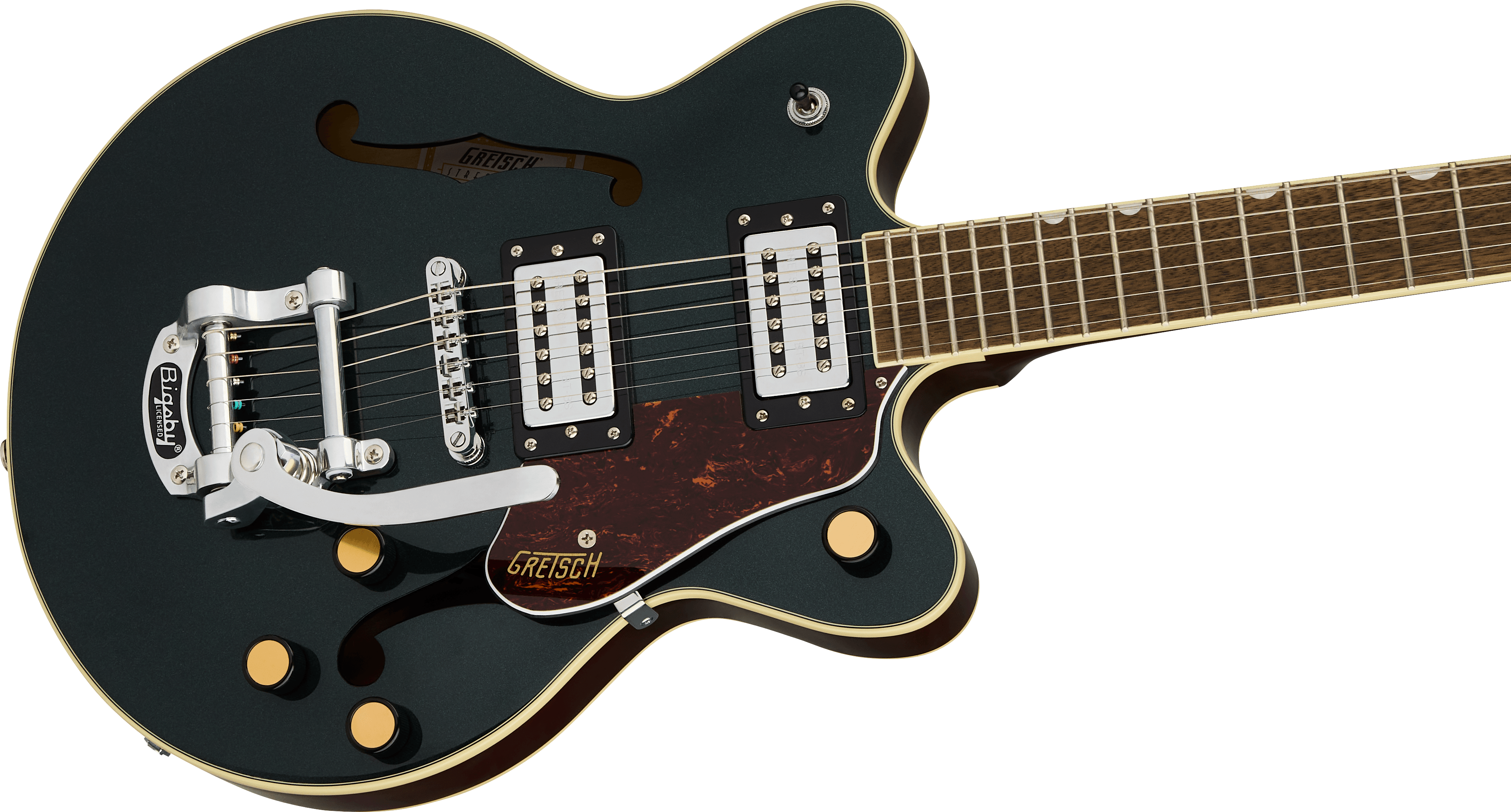 The G2655T Streamliner™ Center Block Jr. Double-Cut with Bigsby® bursts into the modern era with powerful sound and style in a smaller package. The sleek G2655T is designed for the guitarist who demands more than the mundane from an instrument - more performance, more style and most importantly, more volume - while retaining everything you expect from a Gretsch.