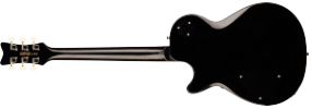 At the heart of each Electromatic Jet is a mahogany body with max core chambering and a carved maple top. Designed for exceptional acoustic balance, this precise combination delivers strong attack with a rich, present mid-range, big lows and shimmering musical highs. A smooth rounded heel allows for unimpeded access to the highest frets, while subtle comfort contours on the body create a balanced ergonomic fit for effortless playability and enhanced comfort.