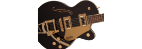 Bridge Anchored Adjusto-Matic™ Hardware Finish Gold Tailpiece Bigsby® B70 Tuning Machines Die-Cast Pickguard Gold Plexi with Black Gretsch® and Electromatic® Logos Control Knobs G-Arrow