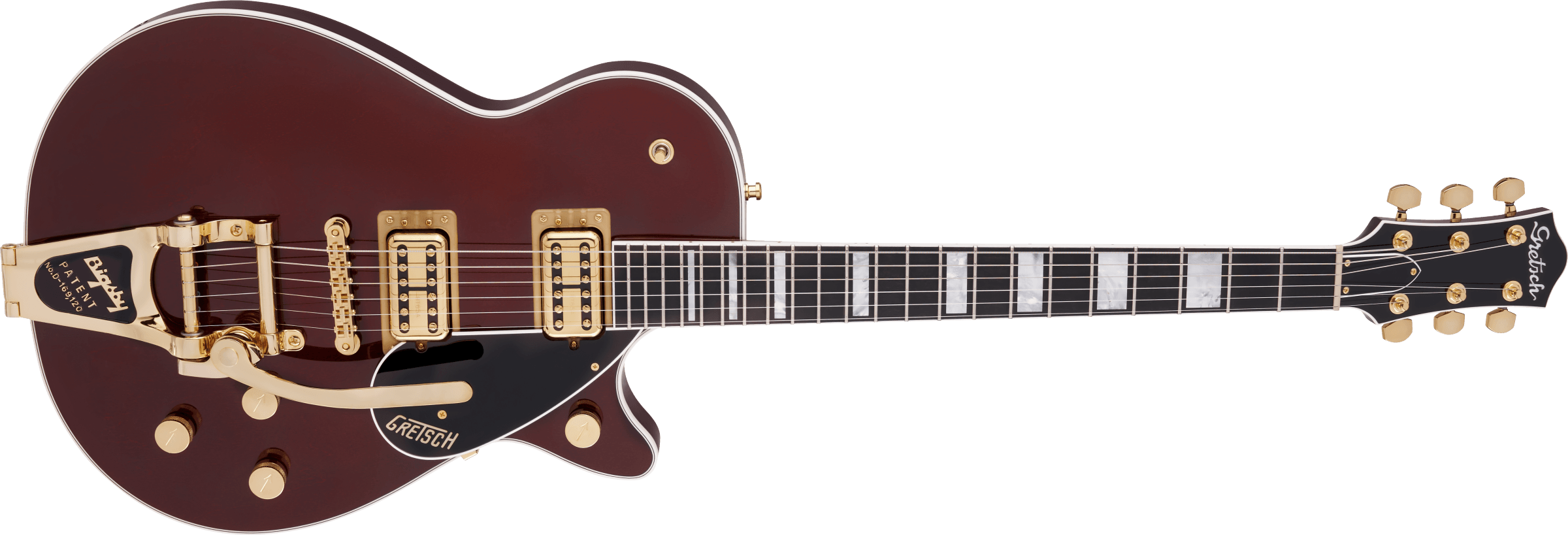 Bridge Adjusto-Matic™ Hardware Finish Gold Tailpiece Bigsby® B7GP String-Thru Tuning Machines Gotoh® Locking Pickguard Bound Black Plexi with Gold Gretsch® Logo Control Knobs Arrow