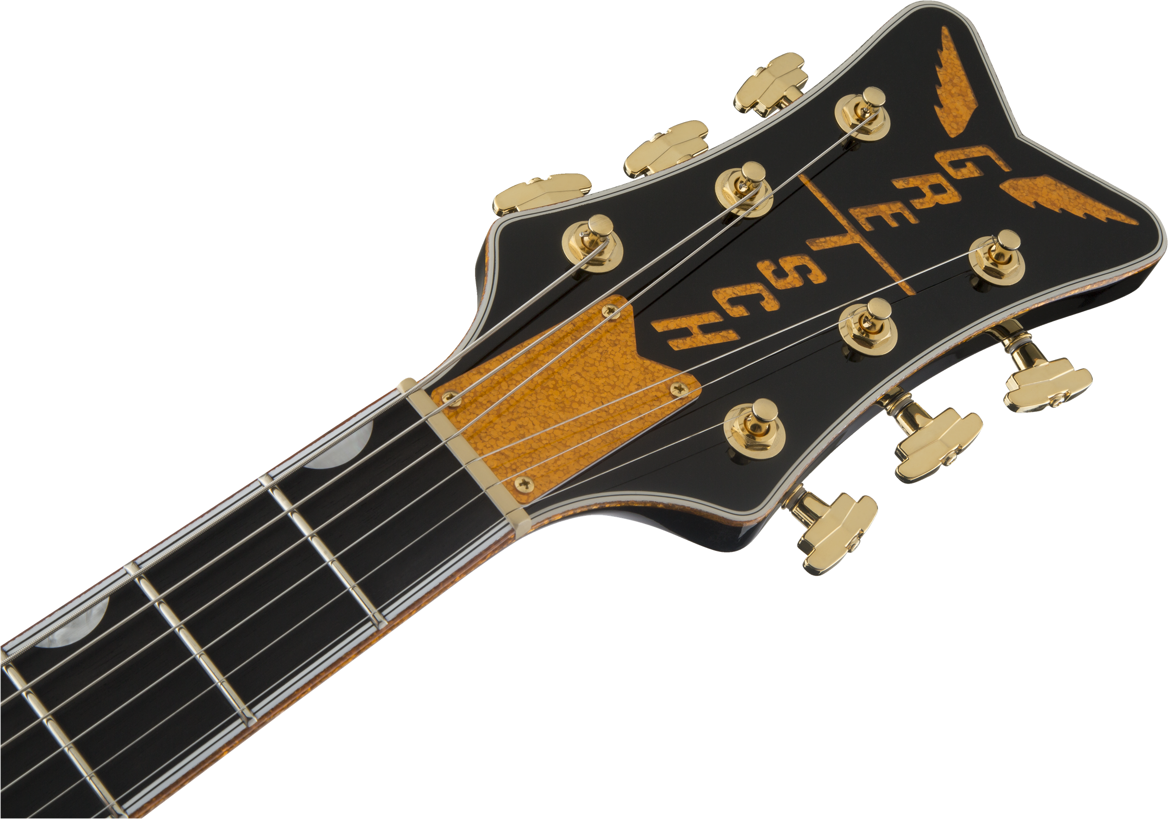 Bridge Anchored Adjusto-Matic™ Hardware Finish Gold Tailpiece Bigsby® B7CP String-Thru Tuning Machines Gotoh® Locking Pickguard Gold Plexi with Gold Gretsch® Logo Control Knobs Jeweled G-Arrow